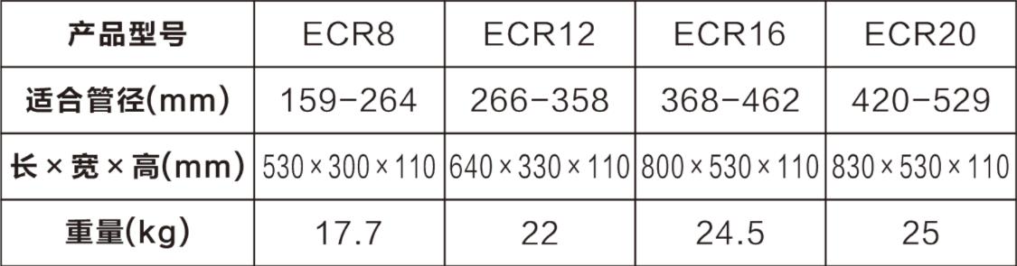 手動旋轉(zhuǎn)式金屬切管機(jī)ECR系列產(chǎn)品是易沃克E-WORK生產(chǎn)的一系列可切割大管徑碳鋼、不銹鋼、鑄鐵、球墨鑄鐵管的冷切割工具。合理的導(dǎo)向架設(shè)計(jì),使切割口平整、筆直,效率更高;采用純手動操作,無火花,確保管道施工過程的AN全;四個(gè)刀片同時(shí)切割,進(jìn)刀更快,更省力;切割無碎屑,確保管道內(nèi)部潔凈,防止閥門堵塞;操作簡單,無需其他動力源,本系列手動旋轉(zhuǎn)式金屬切管機(jī)被廣泛應(yīng)用于空間狹小的溝槽、水中、禁止噪音區(qū)、易燃易爆等環(huán)境中。手動旋轉(zhuǎn)式金屬切管機(jī)有多種型號,分別為8寸旋轉(zhuǎn)式切管機(jī)ECR8、12寸旋轉(zhuǎn)式切管機(jī)ECR12、16寸旋轉(zhuǎn)式切管機(jī)ECR16、20寸旋轉(zhuǎn)式切管機(jī)ECR20。