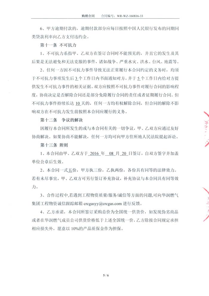 2016年武鋼華潤(rùn)燃?xì)猓ㄎ錆h)有限公司
