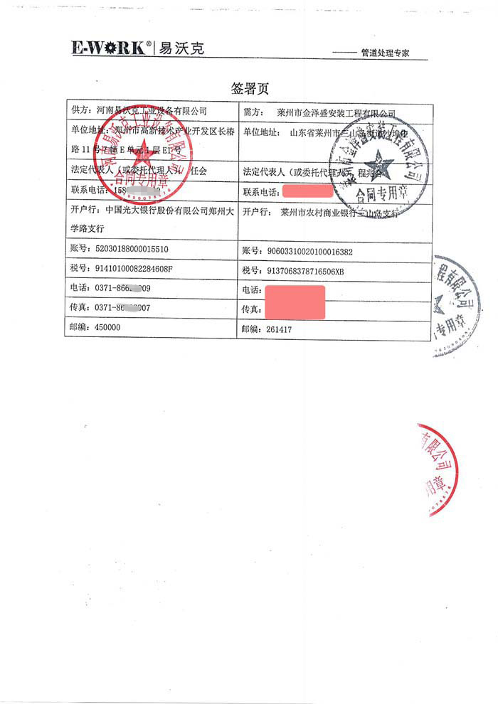 2016年萊州市金澤盛安裝工程有限公司合作業(yè)績(jī)